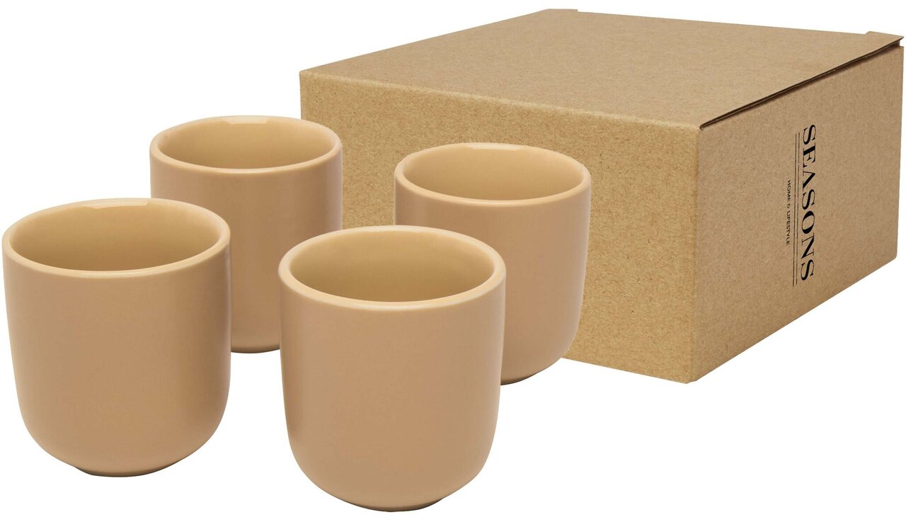 Sada 4 keramických šálků na espresso v moderním severském designu. Objem šálků je 90 ml. Sada je balena v kraftové krabičce.