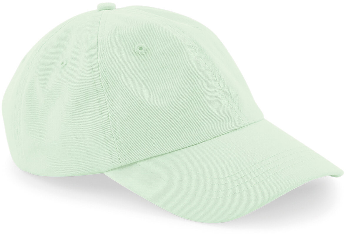 Předtvarovaný kšilt, měkká, nestrukturovaná oblast hlavy, prošité větrací otvory, látkový pásek s kovovým zapínáním, štítek TearAway, pouze čistit houbičkou, nesmí se prát 100% chino bavlna