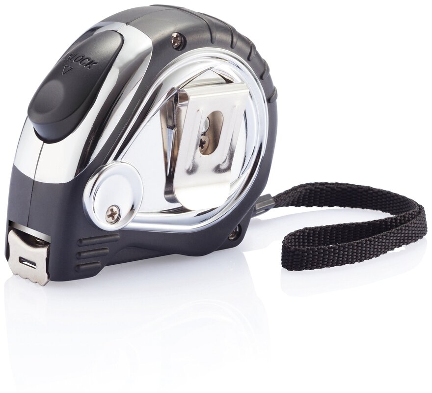 Automatický chromovaný svinovací metr - 5 m/19 mm Černá 016.724