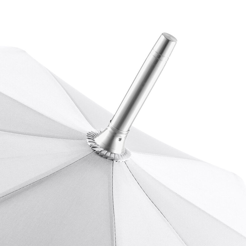 Pohodlná automatická funkce pro rychlé otevírání, vysoce kvalitní systém větruodolný pro maximální flexibilitu rámu v bouřlivých podmínkách, flexibilní sklolaminátová žebra, lehký, ale pevný hliníkový rám, atraktivní rukojeť Soft-Touch se stříbrným tlačítkem a možnost reklamního štítku. K dispozici také jako mini deštník (art. 5565, 5460) a golfový deštník (art. 7580).