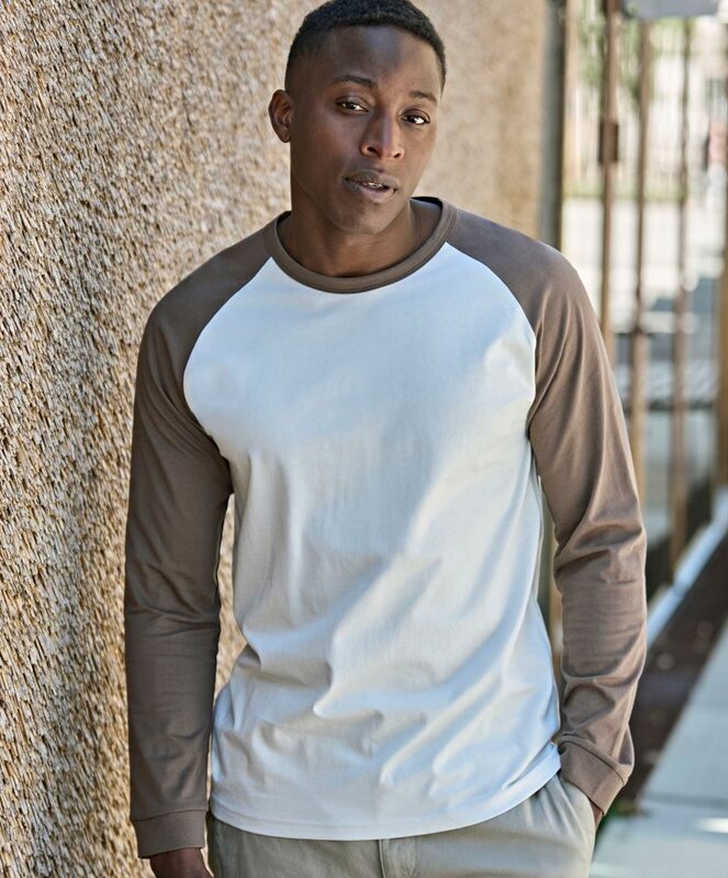 Tričko je vyrobené z certifikované organické bavlny. Raglánové rukávy v kontrastní barvě dodávají triču moderní vzhled, zatímco měkká dlouhovlákná bavlna zajišťuje příjemné nošení po celý den. Lehce vypasovaný střih a žebrované manžety doplňují casualový design vhodný pro volný čas i aktivity.