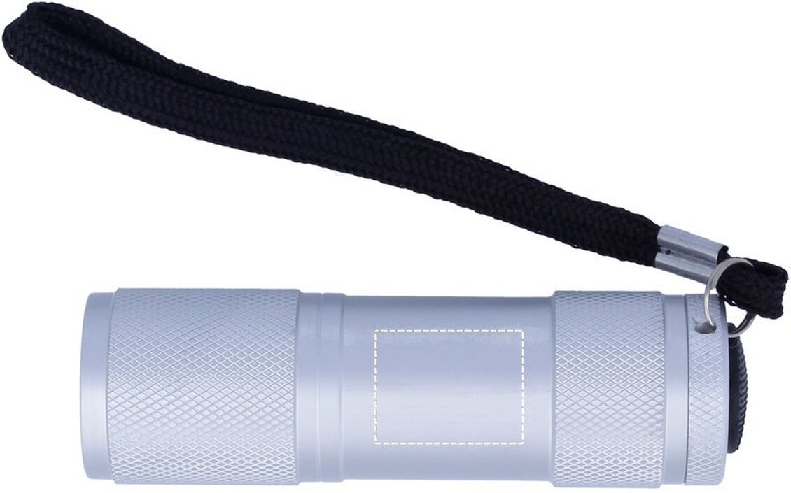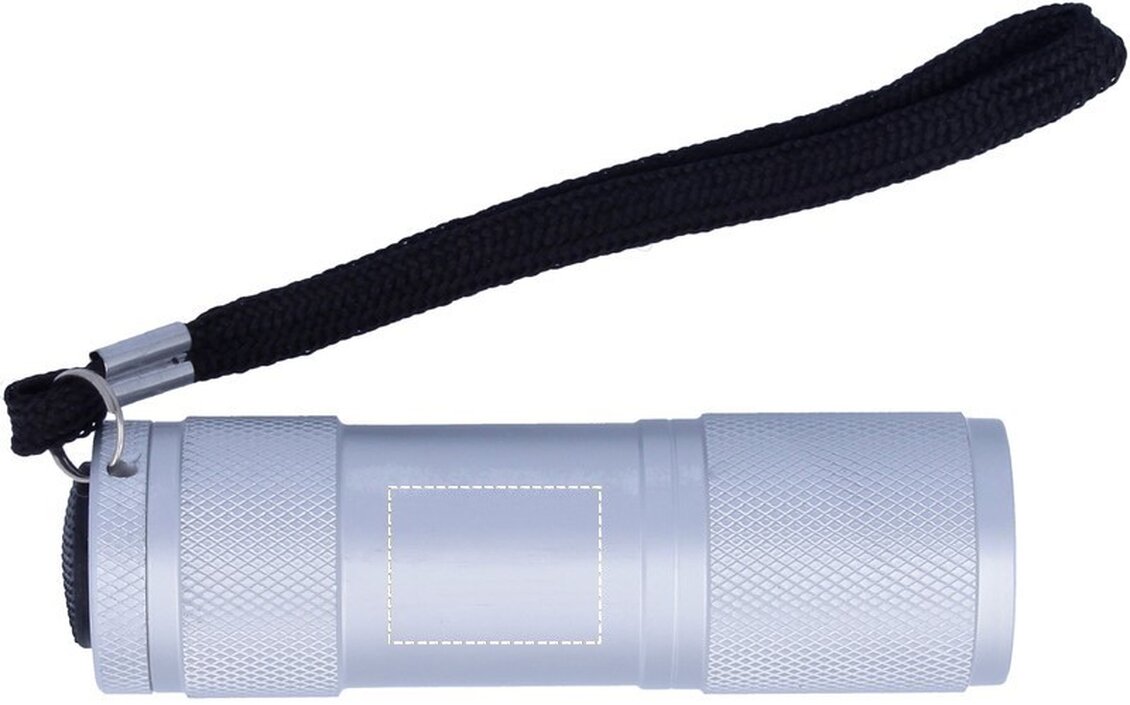 Hliníková LED baterka s odnímatelným poutkem dodávaná v plechové krabičce. Součástí jsou 3xAAA baterie.