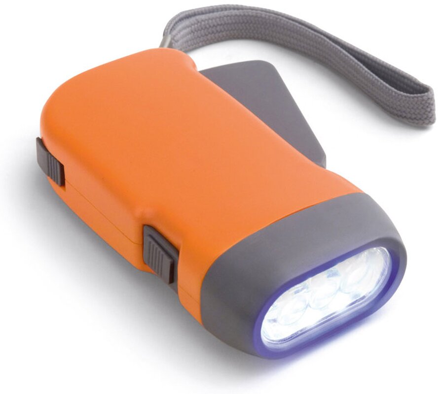 Dynamo svítilna EDDIE se 3 LED diodami. Součástí výrobku jsou 3 baterie AG10.