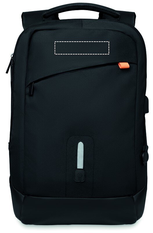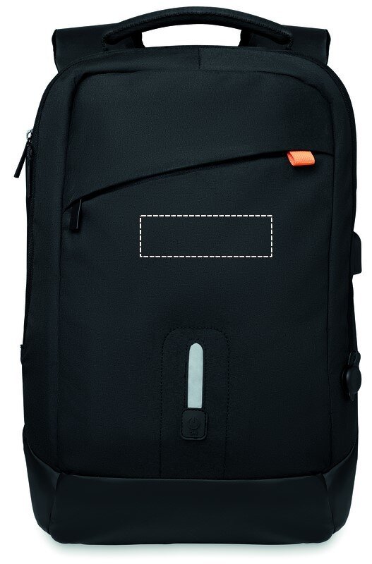 Batoh s vestavěnou vyjímatelnou powerbankou 8000 mAh. Obsahuje nabíjecí port adaptéru střídavého proudu a ukazatel stavu baterie.