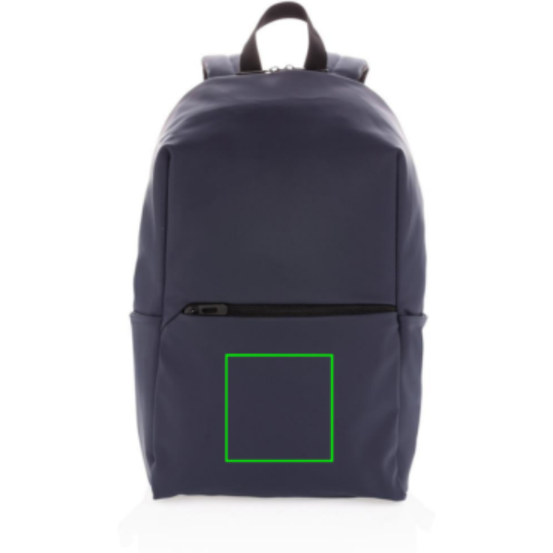 Moderní minimalistický batoh, který obsahuje prostorný hlavní oddíl s vlastní přihrádkou na 15,6" notebook, 2 vnitřní kapsy a 2 očka na pera. Má také přizpůsobitelné polstrované ramenní popruhy. Výrobek je z hladkého PU, vnější část z PU, vnitřní část z 210D polyesteru a produkt je bez PVC.