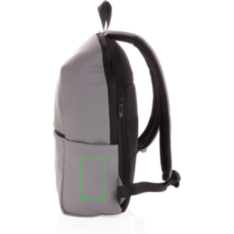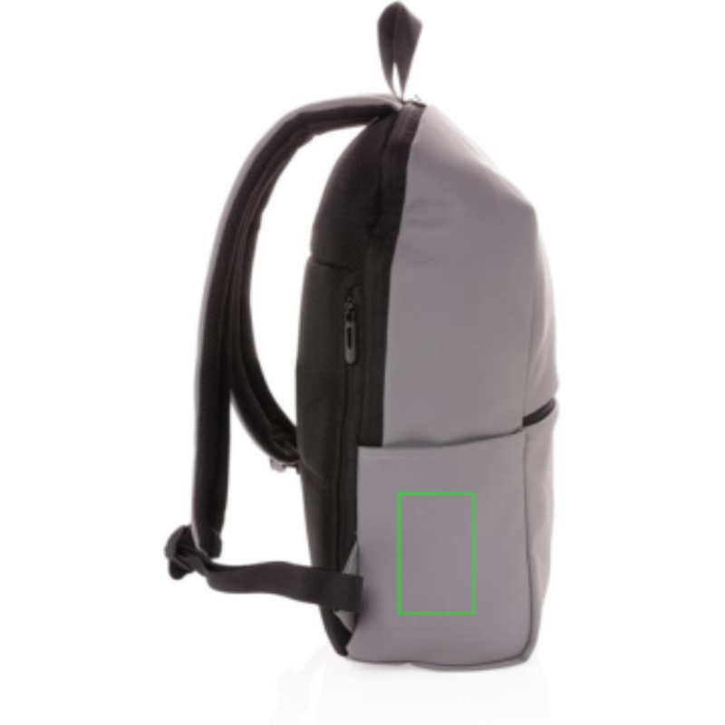 Moderní minimalistický batoh, který obsahuje prostorný hlavní oddíl s vlastní přihrádkou na 15,6" notebook, 2 vnitřní kapsy a 2 očka na pera. Má také přizpůsobitelné polstrované ramenní popruhy. Výrobek je z hladkého PU, vnější část z PU, vnitřní část z 210D polyesteru a produkt je bez PVC.