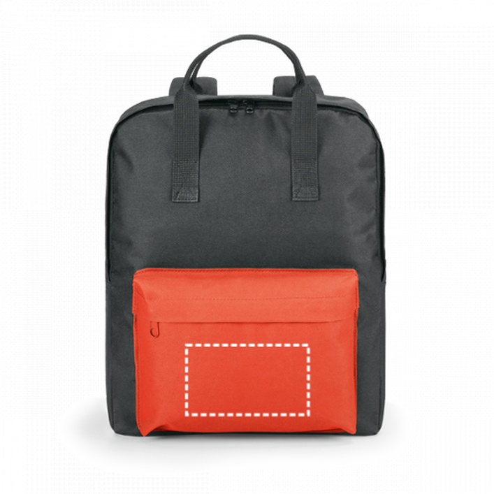 Batoh z 600D s přední kapsou. Zadní část a popruhy jsou polstrované.