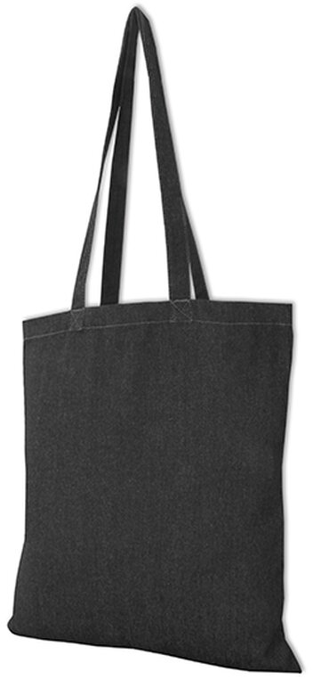 Bavlněná džínová taška přes rameno s dlouhými uchy, které jsou zesílené křížovým stehem. Vezměte si tuto udržitelnou nákupní tašku s sebou na každodenní nákupy potravin nebo ji použijte na akce.