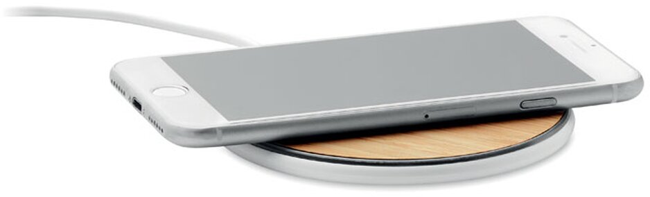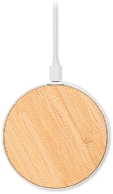 Bezdrátová 15W nabíječka s bambusovým krytem a základnou z plastu ABS. Výstup: DC 9V/1,10A. Kompatibilní s nejnovějšími telefony Android, iPhone® 8, X a novějšími.