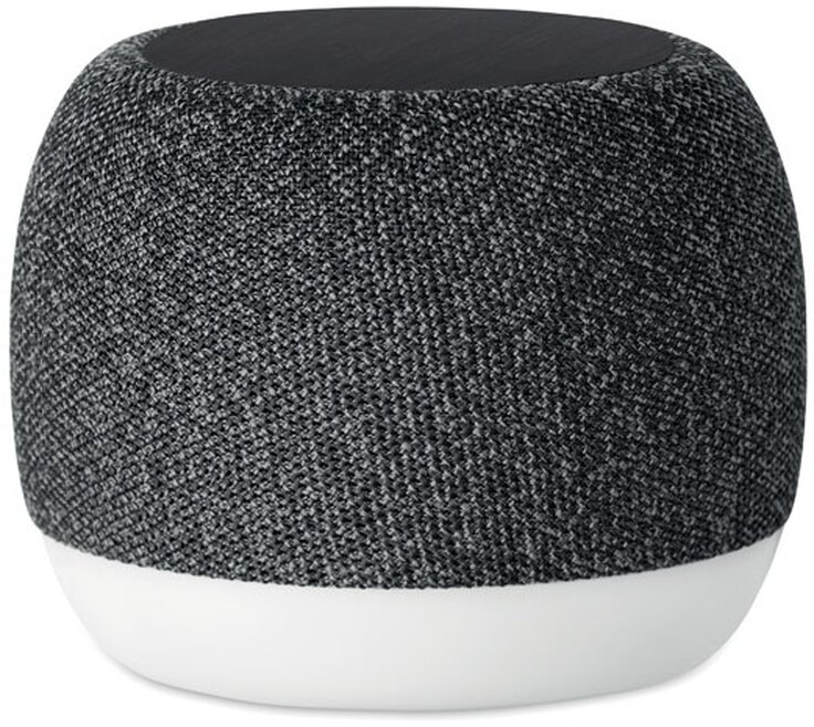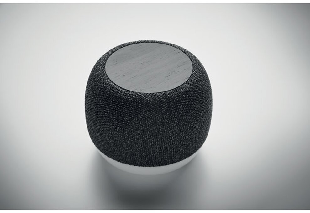 Bezdrátový 5.0 reproduktor a 15W bezdrátová nabíječka z ABS a RPET tkaniny s černýn bambusem na horní straně a základnou se světem. Obsahuje 1 dobíjecí baterii Li-ION 1200 mAh, port pro SD kartu a kabel AUX/USB. Výstupní data: 5W, 3 Ohm a 5V. Doba přehrávání cca 3 h.