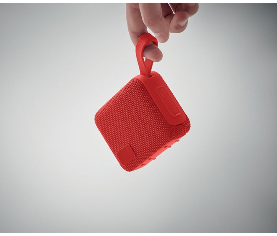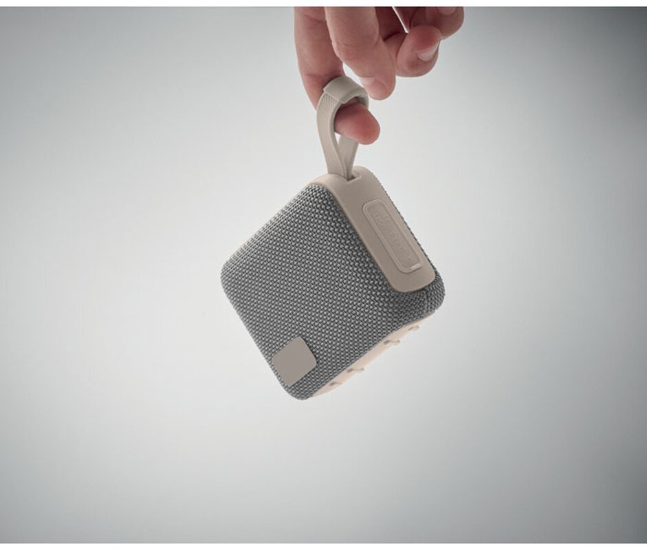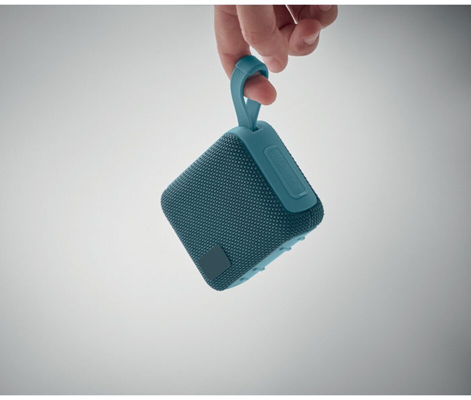 Bezdrátový 5.0 reproduktor z ABS s RPET tkaninou a poutkem. Obsahuje dobíjecí baterii Li-ION 800 mAh. Port pro SD kartu a kabel AUX/USB. Výstupní data: 5W, 3Ohm a 5V. Doba přehrávání cca 3h.
