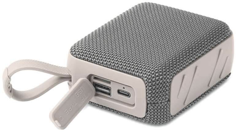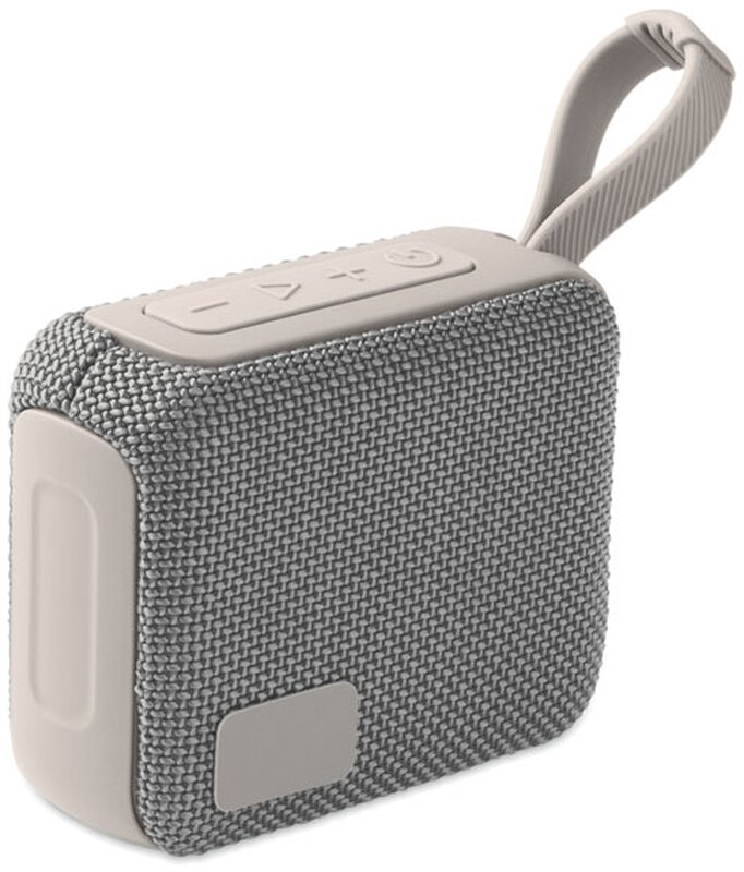 Bezdrátový 5.0 reproduktor z ABS s RPET tkaninou a poutkem. Obsahuje dobíjecí baterii Li-ION 800 mAh. Port pro SD kartu a kabel AUX/USB. Výstupní data: 5W, 3Ohm a 5V. Doba přehrávání cca 3h.