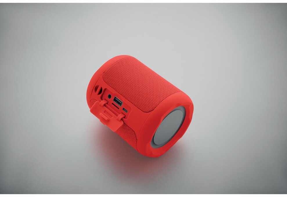 Bezdrátový 5.0 reproduktor z ABS s RPET tkaninou. Obsahuje dobíjecí baterii Li-ION 800 mAh. Port pro SD kartu a kabel AUX/USB. Výstupní data: 5W, 3Ohm a 5V. Doba přehrávání cca 3h.