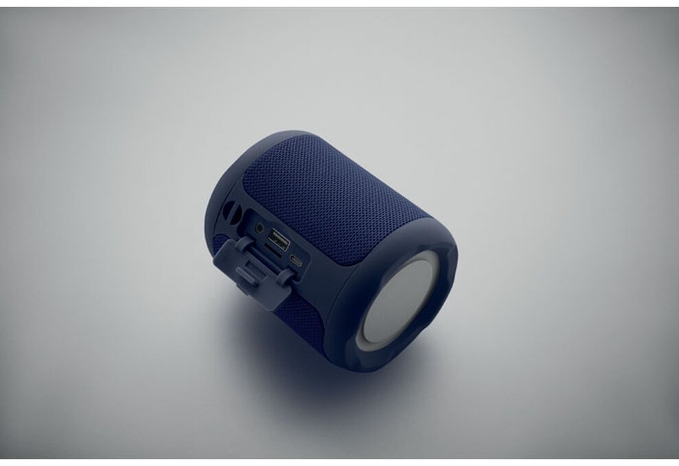 Bezdrátový 5.0 reproduktor z ABS s RPET tkaninou. Obsahuje dobíjecí baterii Li-ION 800 mAh. Port pro SD kartu a kabel AUX/USB. Výstupní data: 5W, 3Ohm a 5V. Doba přehrávání cca 3h.