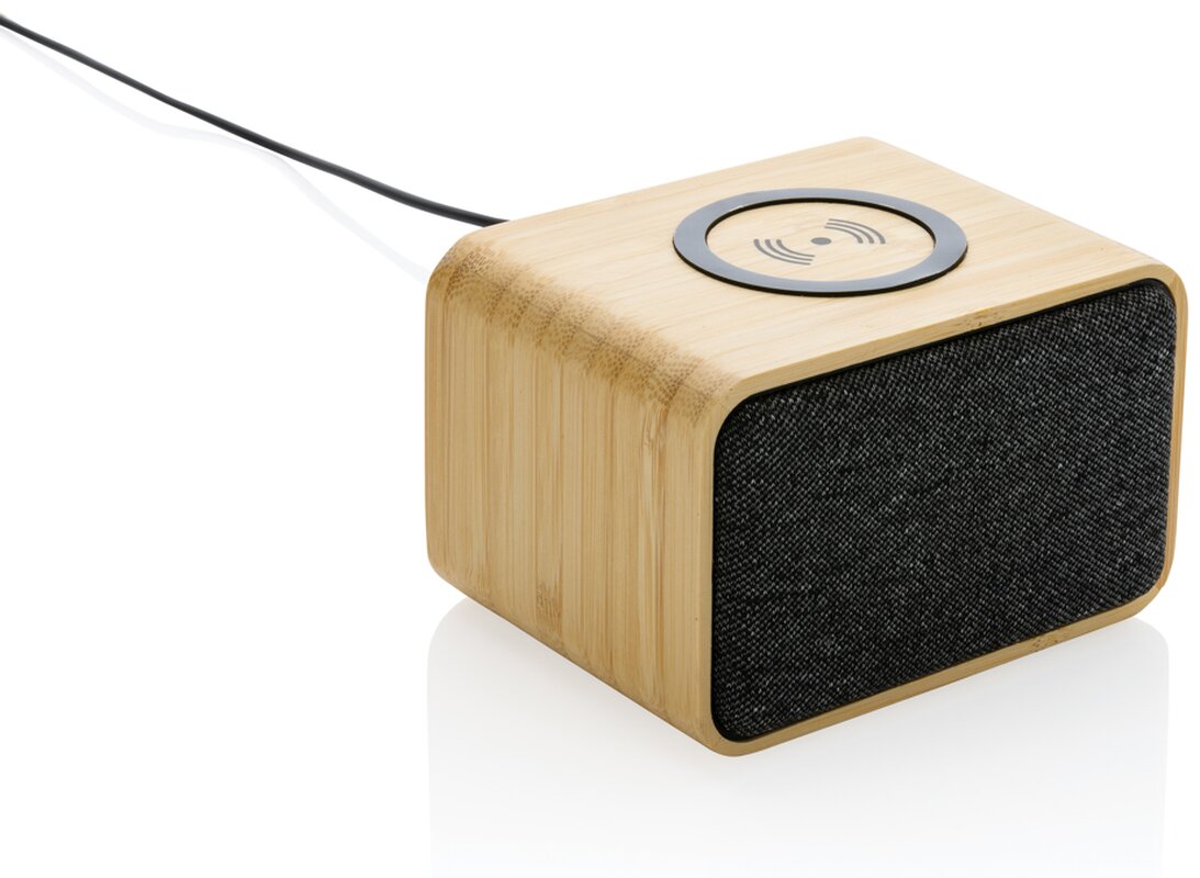 Bezdrátový reproduktor 3W s bezdrátovou nabíječkou 5W na horní straně. Obsahuje zabudovanou baterii s kapacitou 1 200 mAh pro poslech po dobu až 5 hodin na jedno nabití, BT 5.0 pro hladké bezdrátové připojení na vzdálenost až 10m, mikrofon pro telefonování a 100 cm nabíjecí kabel z GRS recyklovaného TPE. Výrobek je z FSC® bambusu a RCS recyklovaného ABS a PET plastu. Celkový podíl recyklátu dle váhy produktu: 37 %. Produkt i příslušenství jsou bez PVC a zabaleny v FSC® dárkové krabičce.