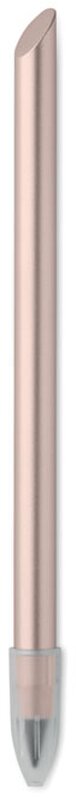 Propiska z recyklovaného hliníku s hrotem pro nekonečné psaní. Hrot pera je z kovové slitiny, který píše díky oxidaci s papírem, hrot se neopotřebovává, není třeba měnit ani ořezávat. Součástí je plastová krytka hrotu.