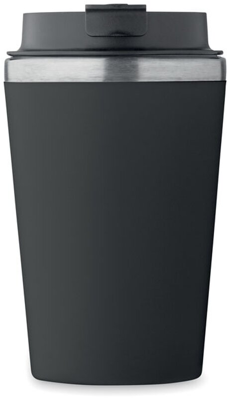 Dvoustěnný pohárek s vnější stěnou z PP a vnitřní stěnou z recyklované nerezové oceli (90 % recyklované nerezové oceli a 10 % nerezové oceli) s keramickou vrstvou. Neteče. Objem: 350 ml.