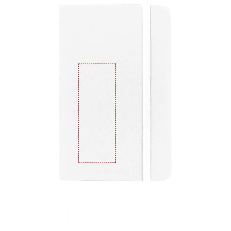 Zápisník velikosti A6 nabízí 96 linkovaných listů pro vaše poznámky. Zápisník má také barevnou gumičku pro uzavírání a stuhu. Povrch desek je vhodný pro potisk vašeho loga nebo jiného motivu.