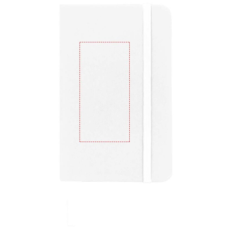 Zápisník velikosti A6 nabízí 96 linkovaných listů pro vaše poznámky. Zápisník má také barevnou gumičku pro uzavírání a stuhu. Povrch desek je vhodný pro potisk vašeho loga nebo jiného motivu.