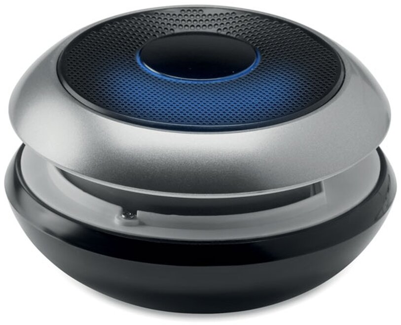 OSPEAK je pěkný, kulatý 4.1 Bluetooth reproduktor s líbivým podsvícením Vámi vybraného loga na tlačítku ON/OFF. K reproduktoru se můžete připojit velmi snadno s jakýmkoliv bluetooth zařízením a s funkcí telefonování hands-free. V reproduktoru je zabudovaná silná dobíjecí baterie o kapacitě 300 mAh. K zařízení je dále přiložen nabíjecí kabel micro USB. Dosah od zdroje signálu je 10 m. Výstupy jsou 3W, 4 ohm a 5V.
