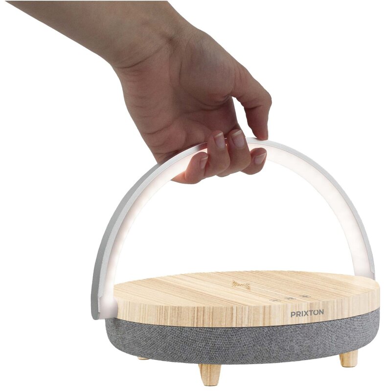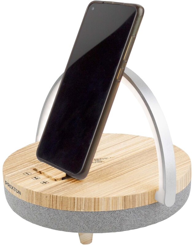 Multifunkční reproduktor slouží jako bezdrátový Bluetooth® speaker, základna pro bezdrátové nabíjení telefonu, LED lampa se 3 úrovněmi jasu a praktický držák na mobilní telefon. Užijte si oblíbenou hudbu a současně nabíjejte telefon bez kabelů. V balení naleznete nabíjecí kabel typu C a pomocný kabel.