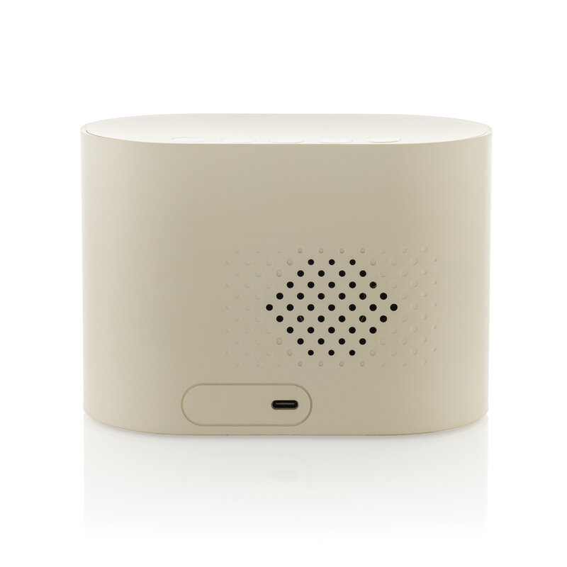 Inovativní budík LumaRise Sunrise z recyklovaných materiálů s RCS certifikací, ideální pro firemní potisk. Mění vaše rána díky uklidňující simulaci východu slunce, která se postupně rozjasňuje a pomáhá vám přirozeně a klidně se probudit. Integrovaná funkce bílého šumu nabízí šest uklidňujících zvukových krajin, které vytvářejí dokonalé prostředí pro klidný spánek. Poskytuje energizující zážitek při probouzení, takže budete svěží a připraveni začít svůj den. Ideální do každé ložnice pro lepší spánek a přirozené probouzení. Rekordních 58% recyklovaný obsah s RCS certifikací, bez PVC, FSC® balení. Včetně 120cm USB A na USB C kabelu z recyklovaného TPE.