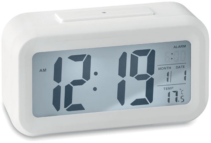 Praktický digitální budík SINGAPUR se světelným senzorem.