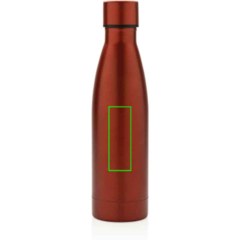 Nepropustná termo lahev s objemem 500ml, bezpečným šroubovacím uzávěrem a jednoduchým aktraktivním designem. Úzké tělo pasuje do většiny automobilových držáků na nápoje. Lahev uchovává nápoj horký po dobu až 5h a studený až 15h. Vyrobeno z RCS recyklované nerezavějící oceli. Podíl použitého recyklovaného materiálu vzhledem k celkové váze produktu: 85 %. Bez BPA. Produkt je zabalen v FSC kraftové krabičce.