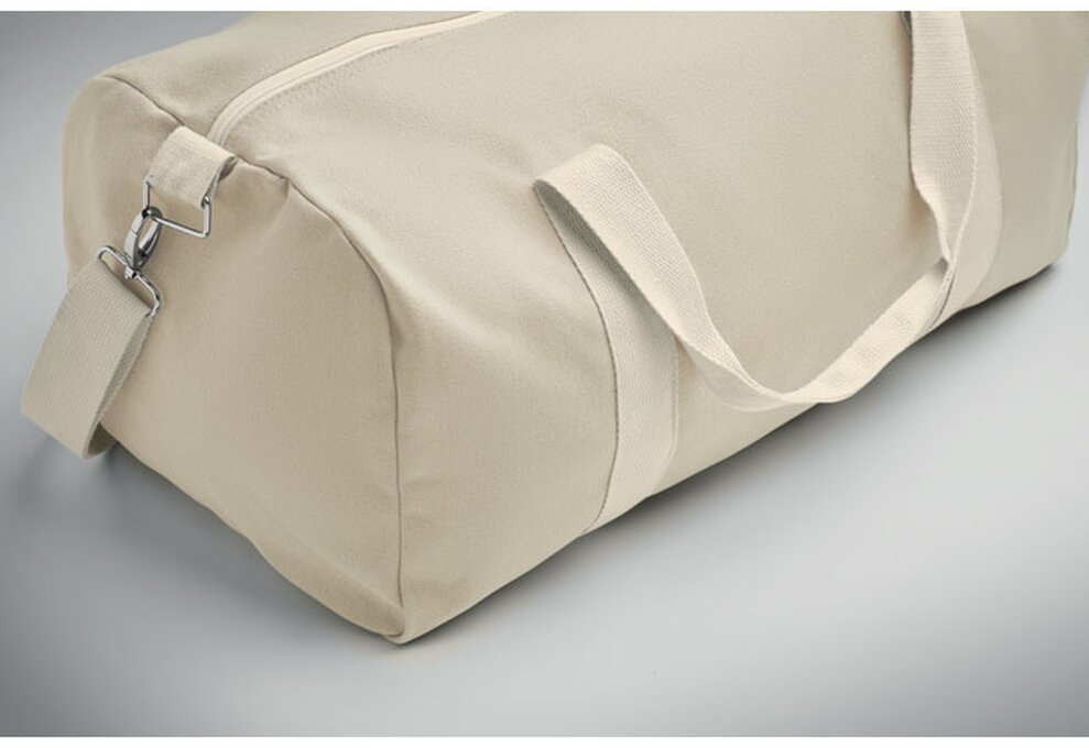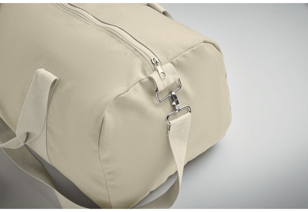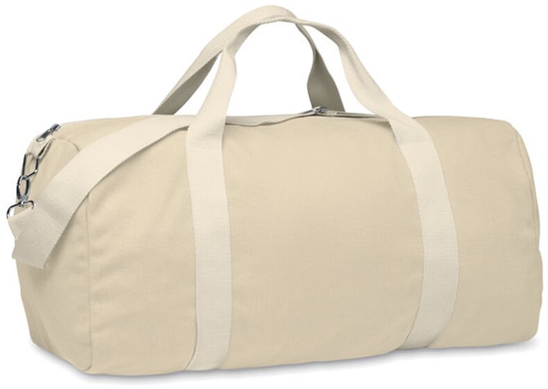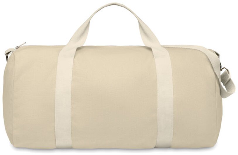 Sportovní nebo cestovní taška s dlouhým odepínatelným popruhem přes rameno a kratšími bavlněnými uchy pro snadné nošení. Taška je vyrobena z kombinace recyklovaných materiálů (60 % recyklovaná bavlna, 40 % recyklovaný polyester), gramáž tkaniny je 320 g/m².