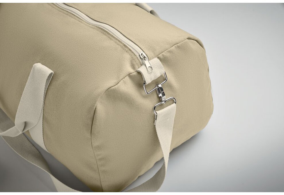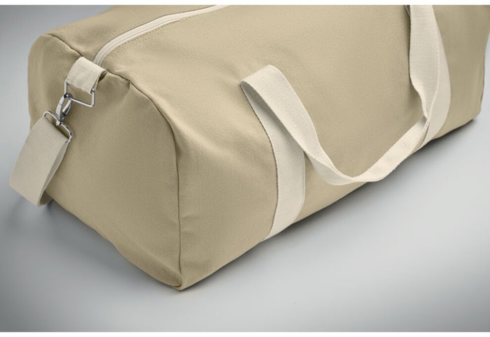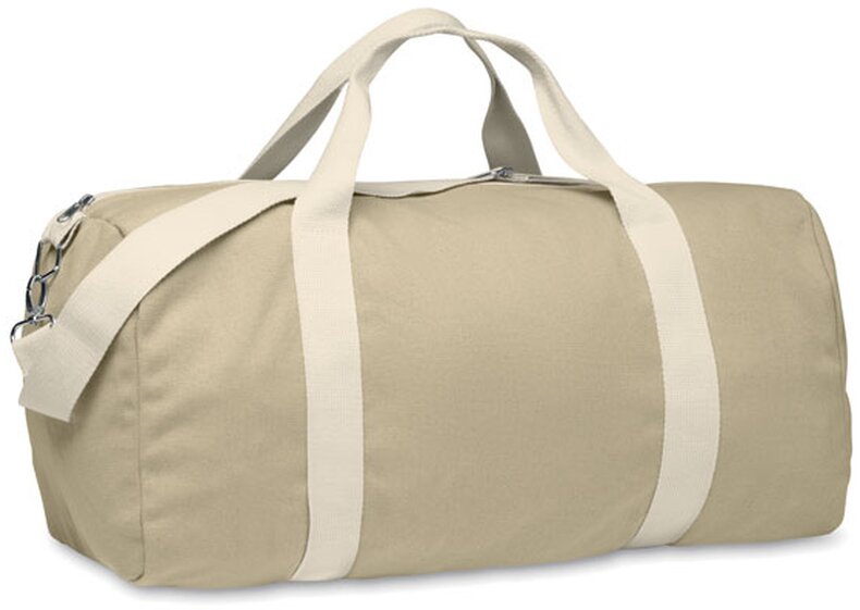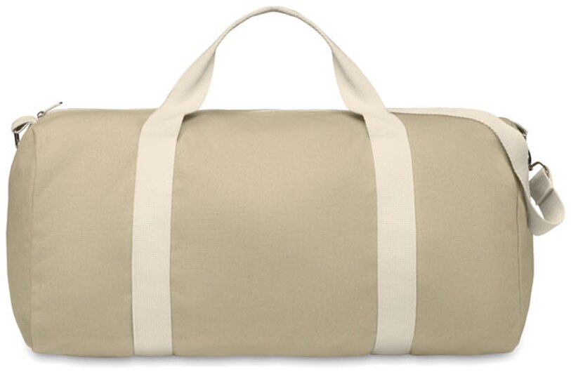 Sportovní nebo cestovní taška s dlouhým odepínatelným popruhem přes rameno a kratšími bavlněnými uchy pro snadné nošení. Taška je vyrobena z kombinace recyklovaných materiálů (60 % recyklovaná bavlna, 40 % recyklovaný polyester), gramáž tkaniny je 320 g/m².