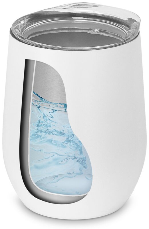 Termohrnek z nerezové oceli v zajímavém designu. S tělem s dvojitou konstrukcí a víčkem. Objem až 400 ml. Dodáváno v krabičce.