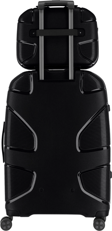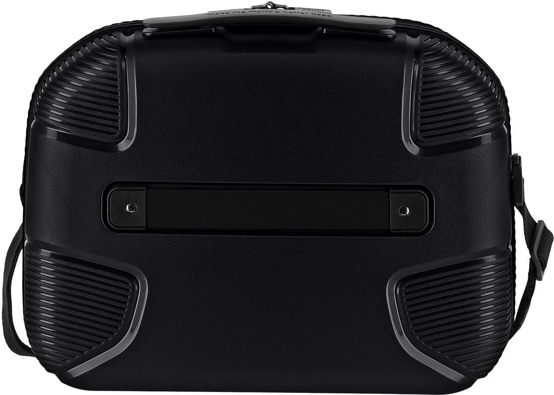 Na zadní straně je popruh pro uchycení ke kufru a nechybí nastavitelný/odnímatelný ramenní popruh. Podšívka je vyrobená z recyklovaných PET lahví.