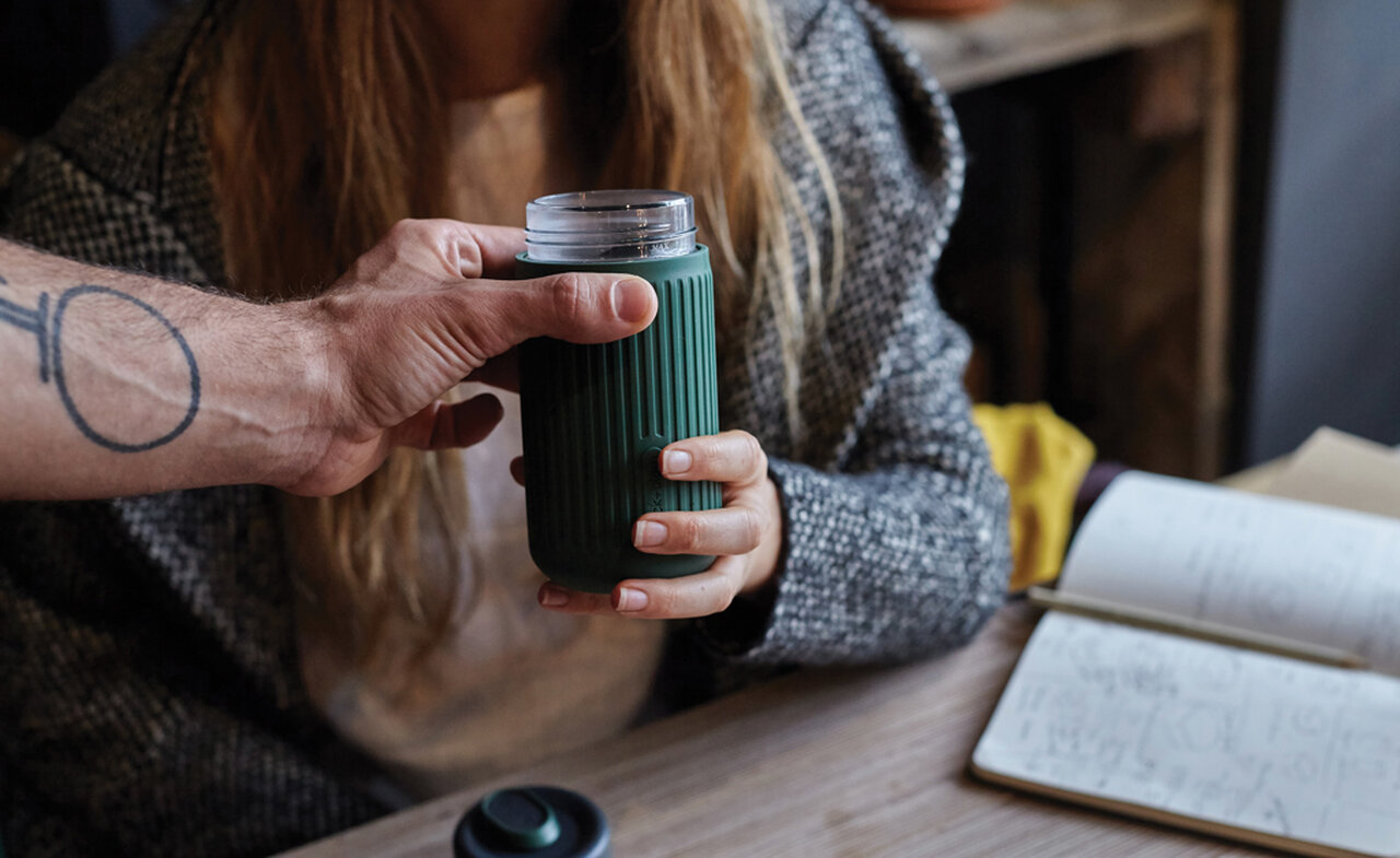 Cestovní skleněný hrnek 340 ml Black+Blum Olivově zelená 057.503