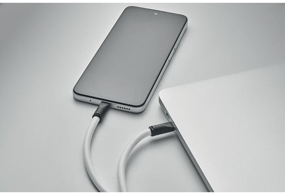 Šňůrka na krk s držákem telefonu a 60W nabíjecím a datovým kabelem type-C na type-C z materiálu RPET.