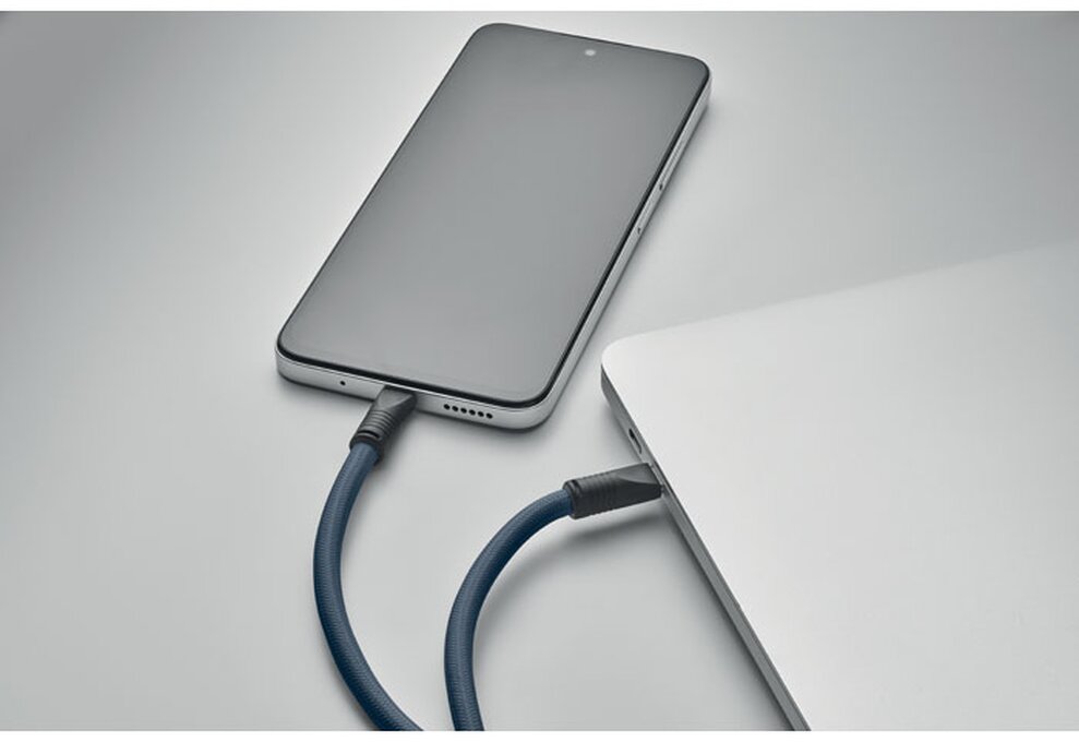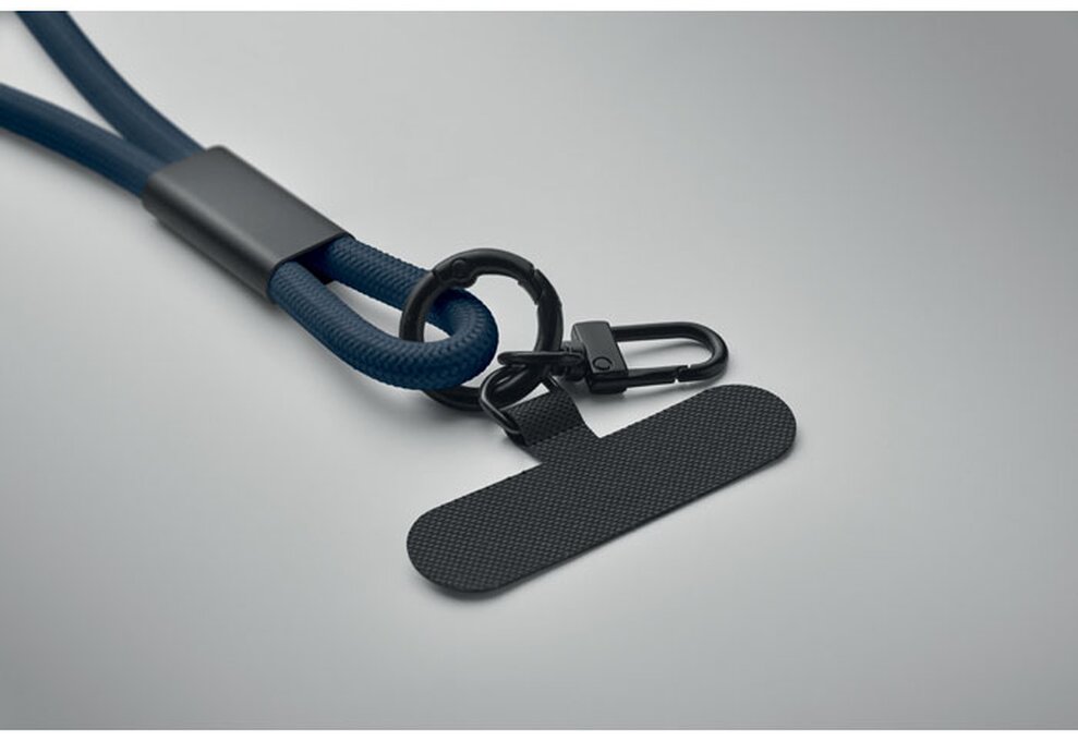 Šňůrka na krk s držákem telefonu a 60W nabíjecím a datovým kabelem type-C na type-C z materiálu RPET.