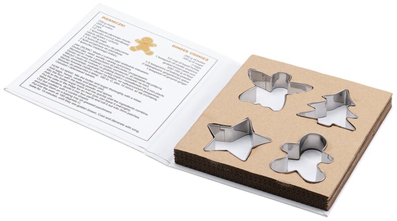 Sada 4 ks vykrajovátek různých tvarů pro přípravu vánočního cukroví. Baleno v ekologické kartonové krabičce. Uvnitř krabičky najdete také recept na lahodné zázvorové sušenky (v anglickém jazyce). Cukroví doporučujeme ozdobit polevou.