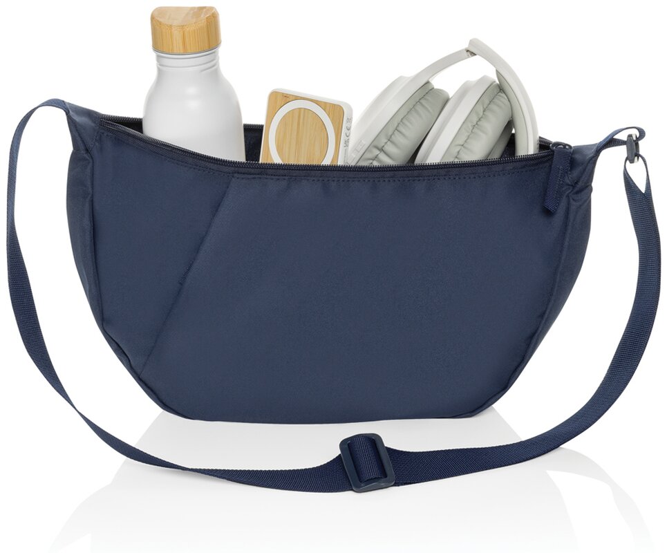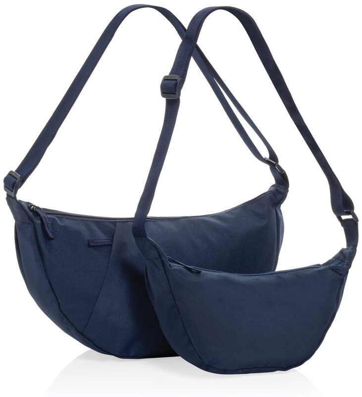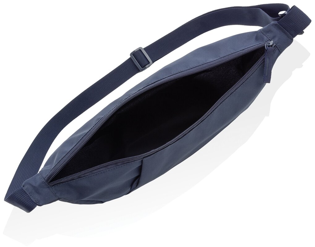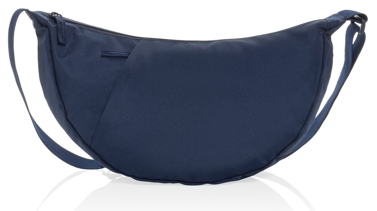Větší crossbody taška Crescent XL ve tvaru půlměsíce z recyklovaného polyesteru AWARE™, ideální pro firemní potisk. AWARE™ technologie zaručuje skutečné použití recyklovaných materiálů. Pohodlný tvar půlměsíce dobře sedí na těle a snadno se nosí celý den. Větší kapacita pojme vše potřebné pro každodenní použití, vnější kapsa na zip umožní rychlý přístup k drobnostem. Nastavitelný ramenní popruh se přizpůsobí každému.