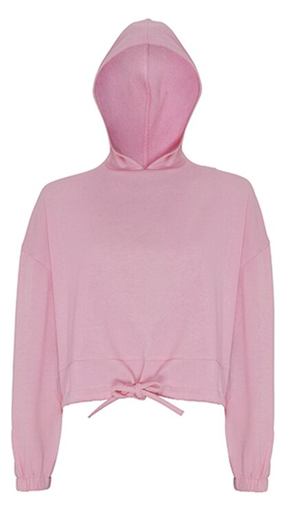 Moderní mikina s volným, oversize střihem, která kombinuje pohodlí a trendový vzhled. Zkrácená délka a stahovací šňůrka v pase umožňují přizpůsobení siluety, zatímco spadlá ramena dodávají ležérní styl ideální pro volný čas i městské nošení.