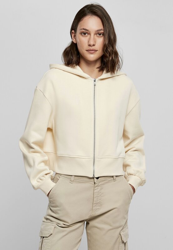 Dámská zkrácená oversized mikina na zip od Build Your Brand je dokonalým představitelem současných streetwear trendů. Zkrácená délka a oversized střih vytváří módní siluetu, kterou mladá generace miluje. Mikina se snadno zapíná zipem na přední straně a nabízí maximální komfort díky casualovým oversized ramenům a extra velké kapuci.
