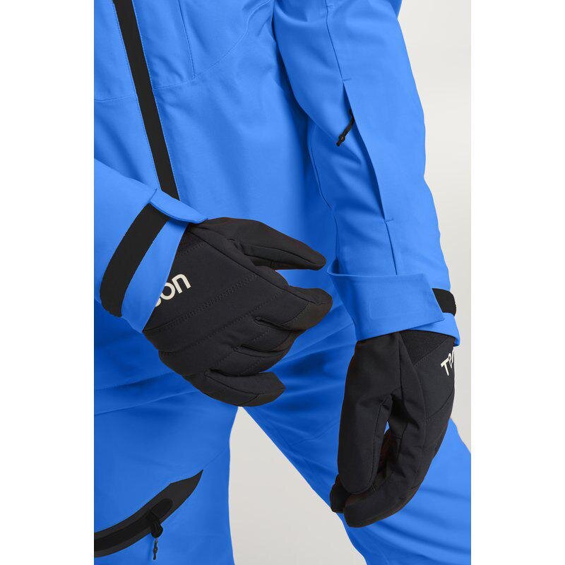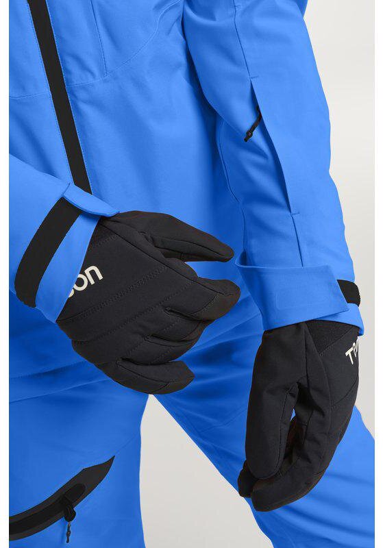 Bunda má fleecem podšitý límec i kapsy, vnitřní rukávy s otvory na palce, nastavitelnou kapuci (odnímatelnou), manžety i spodní lem. Sněhový pás chrání před vniknutím sněhu při jízdě.