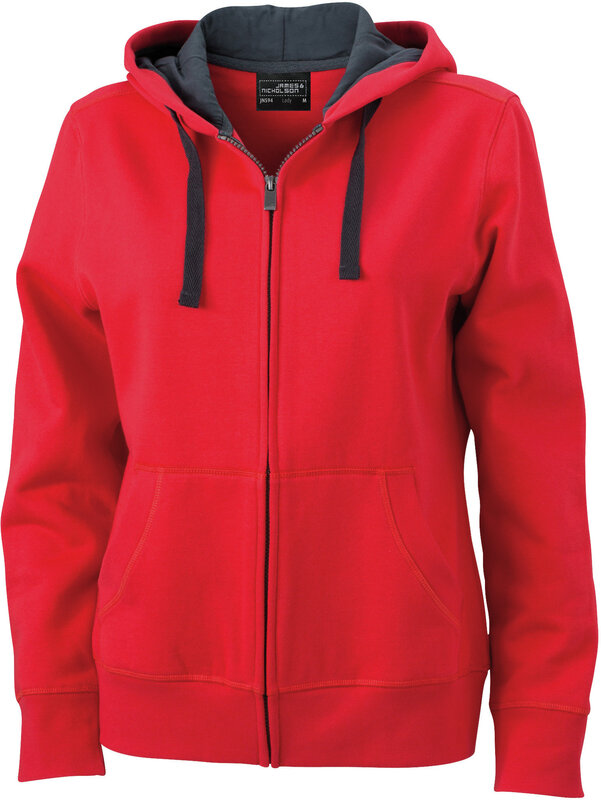 Dámská mikina James & Nicholson Ladies Hooded s kapucí. Premium mikina s Bionic Finish. Vnější látka: 80% bavlna - česaná, 20% polyester. Kvalitní tkanina drsnější uvnitř, vodu a nečistoty odpuzující. Mikina má elastické ozdoby, 2vrstvou kapuci. Vnitřek kapuce a šňůrky v kontrastní barvě, klokaní kapsa. Vypasovaný střih. Gramáž je 310 g/m². Balení: 1/30 (ks v jednom sáčku / celkem ks v kartonu).