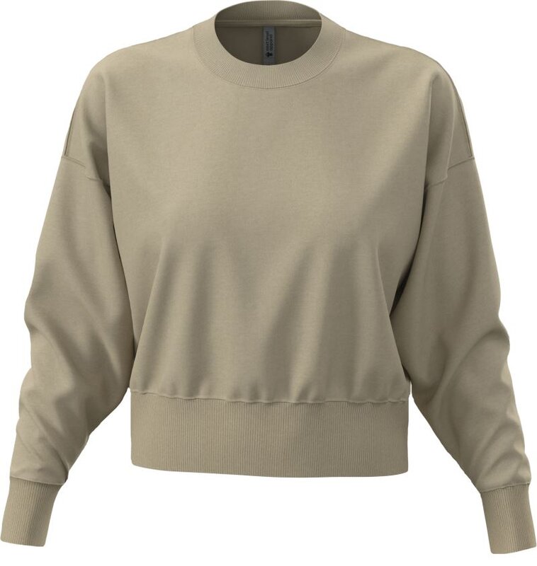 Stylová dámská mikina s kratším, oversize střihem a pohodlnými přesahujícími rameny dodává ležérní vzhled pro každodenní nošení i volný čas. Vyrobena z prémiové třívrstvé teplákoviny s povrchem ze 100% česané prstencové bavlny a počesaným vnitřkem, který poskytuje příjemné teplo. Příměs recyklovaného polyesteru zvyšuje odolnost a snižuje ekologickou stopu. Gramáž 340 g/m² zajišťuje optimální hustotu a komfort.