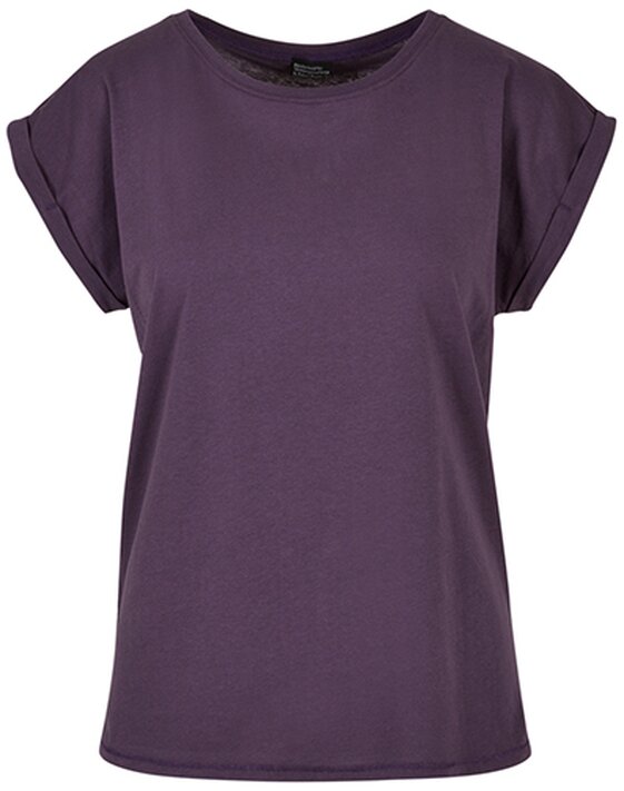 Triko se zajímavým ležérním střihem se spadlými rameny. Rukávy jsou krátké, ohrnuté. Triko má kulatý výstřih z žebrovaného úpletu. Délka střihu je prodloužená, rovná.