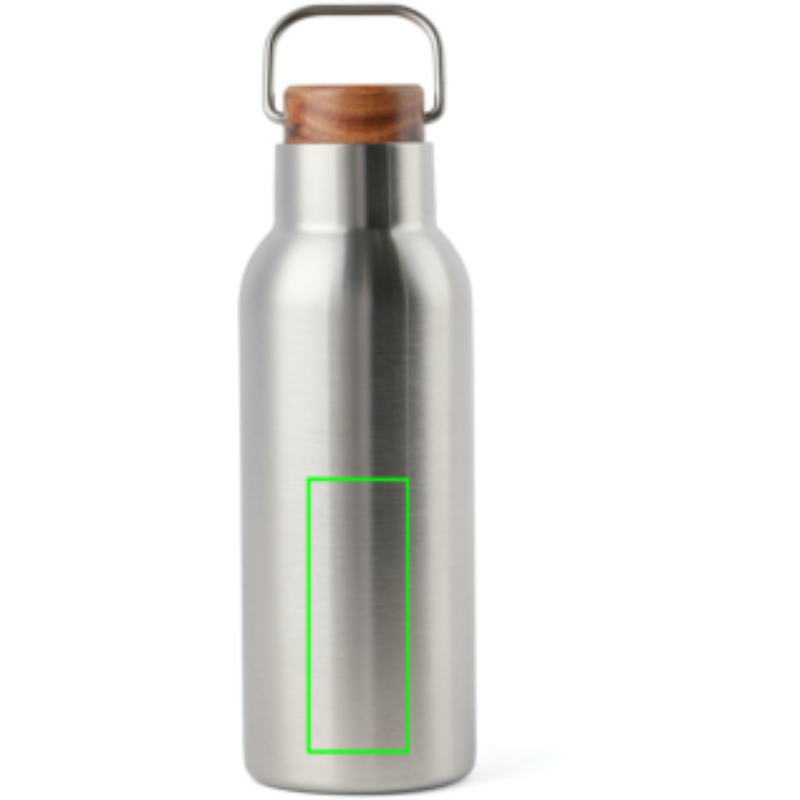 Termoláhev má uzávěr z akáciového dřeva a kovové poutko pro snadné nošení.