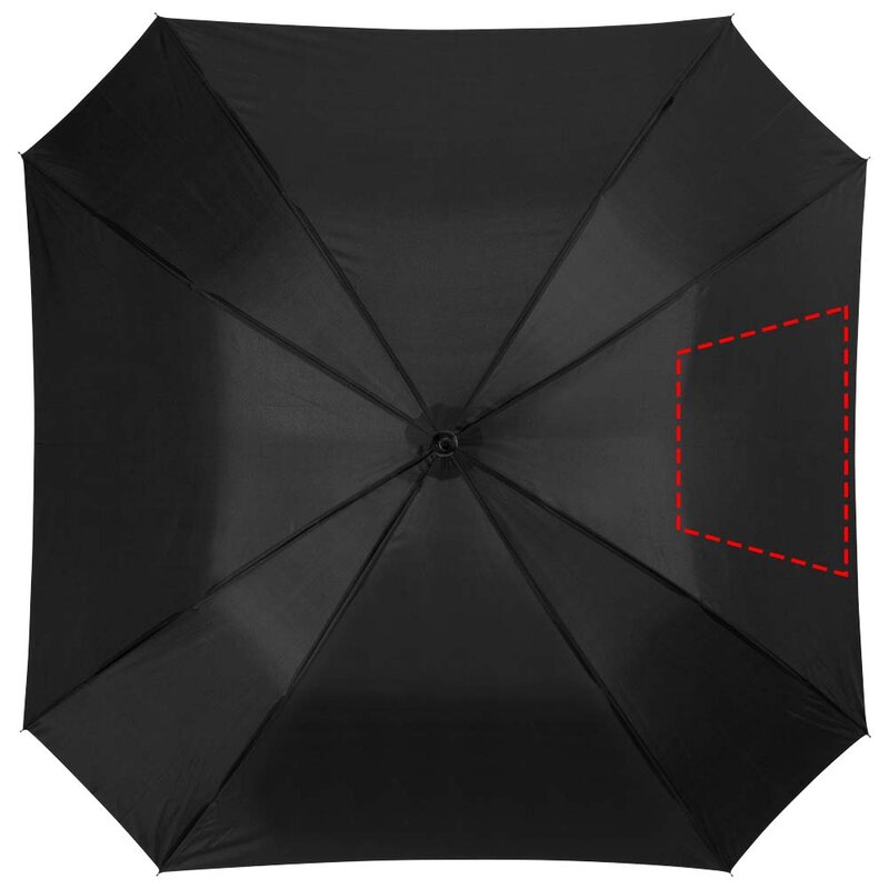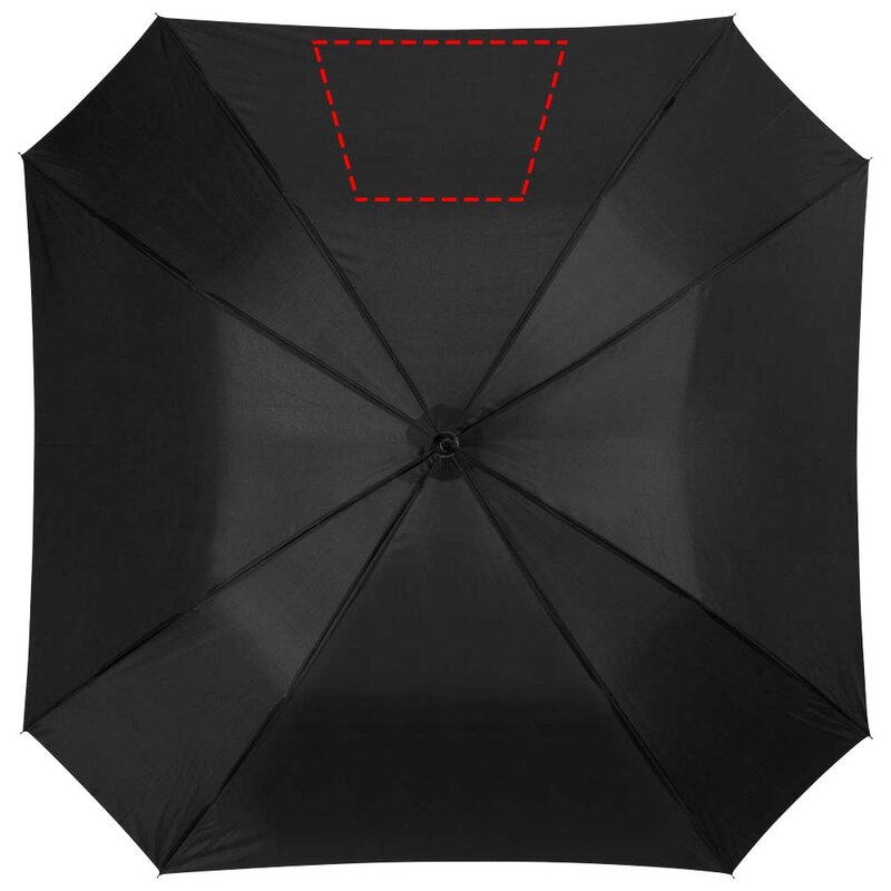 Čtvercový automatický deštník 23,5". Čtvercový deštník s kovovou konstrukcí, kovovými žebry a dřevěnou rukojetí. Polyester.