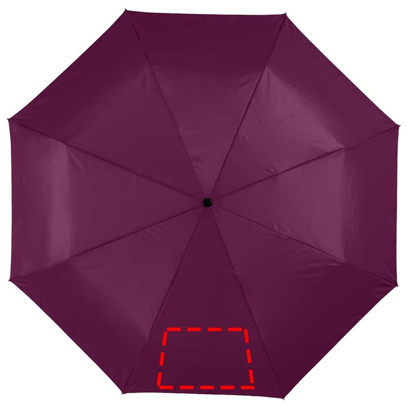 Trojdílný deštník 21,5" s automatickým otevíráním a skládáním. Trojdílný deštník s tlačítkem automatického otevírání a skládání. Kovová konstrukce a žebra a plastová rukojeť. Deštník je dodáván v pouzdře. Polyester.