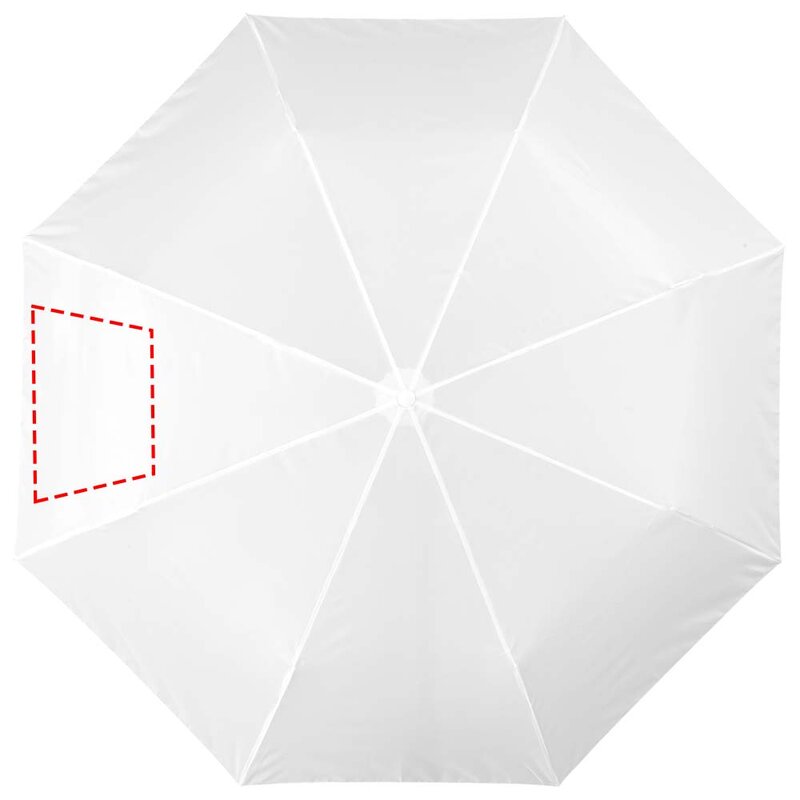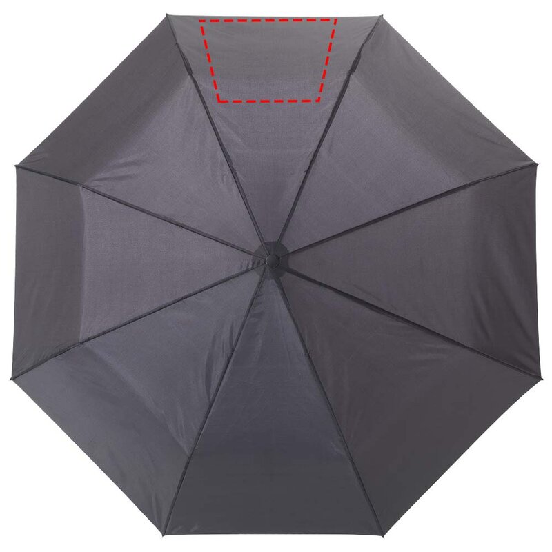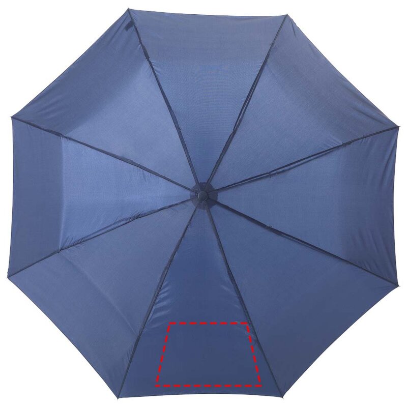 Trojdílný deštník 21,5". Deštník 21,5" s kovovou konstrukcí, kovovými žebry a plastovou rukojetí. Deštník je dodáván v pouzdře. Polyester.