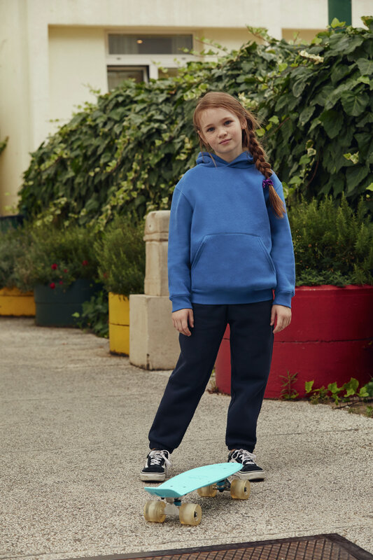 Dětská mikina Premium Hooded Sweat s klasickým střihem a kapsou "klokanka". Kapuce bez stahovacích šňůrek. Zpevňovací páska za krkem z jednoduchého žerzeje. Materiál: 70% bavlna, 30% polyester. Lze prát ve 40°. Žehlení dovoleno. Plošná hmotnost: 280 g/m² (Bílá, Šedý melír: 260 g/m²).