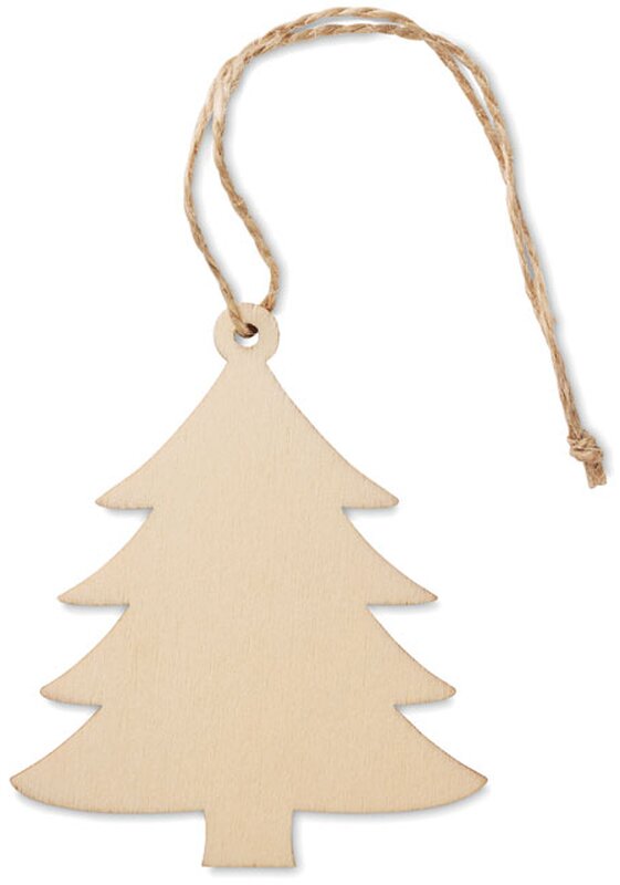 Dřevěná ozdoba ve tvaru stromečku z MDF s jutovou šňůrou. MDF je přírodní materiál a proto se barevnost a tvar jednotlivých ozdob může mírně lišit.