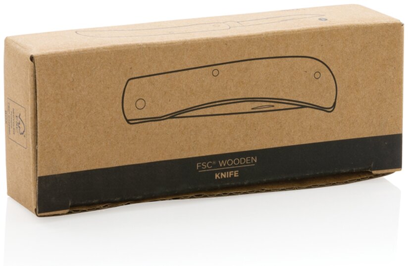 Skládací kapesní nůž je vyroben z mimořádně pevné nerezové oceli (SS 420) s prvky z FSC® dřeva. Rockwell tvrdost: 42-52. Čepel nože je vhodná i na krájení potravin. Baleno v FSC® kraftové krabičce.